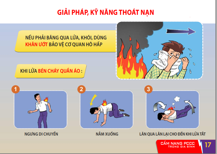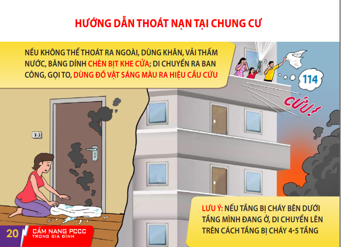 và chữa cháy qua số 114. Khi có lực lượng đến cứu, bạn phải bình tĩnh, chú ý