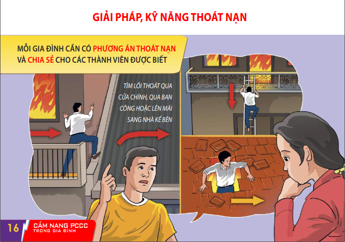 thể thoát ra từ cửa sổ, ban công hay nhảy qua mái nhà bên cạnh. Tuyệt đối không