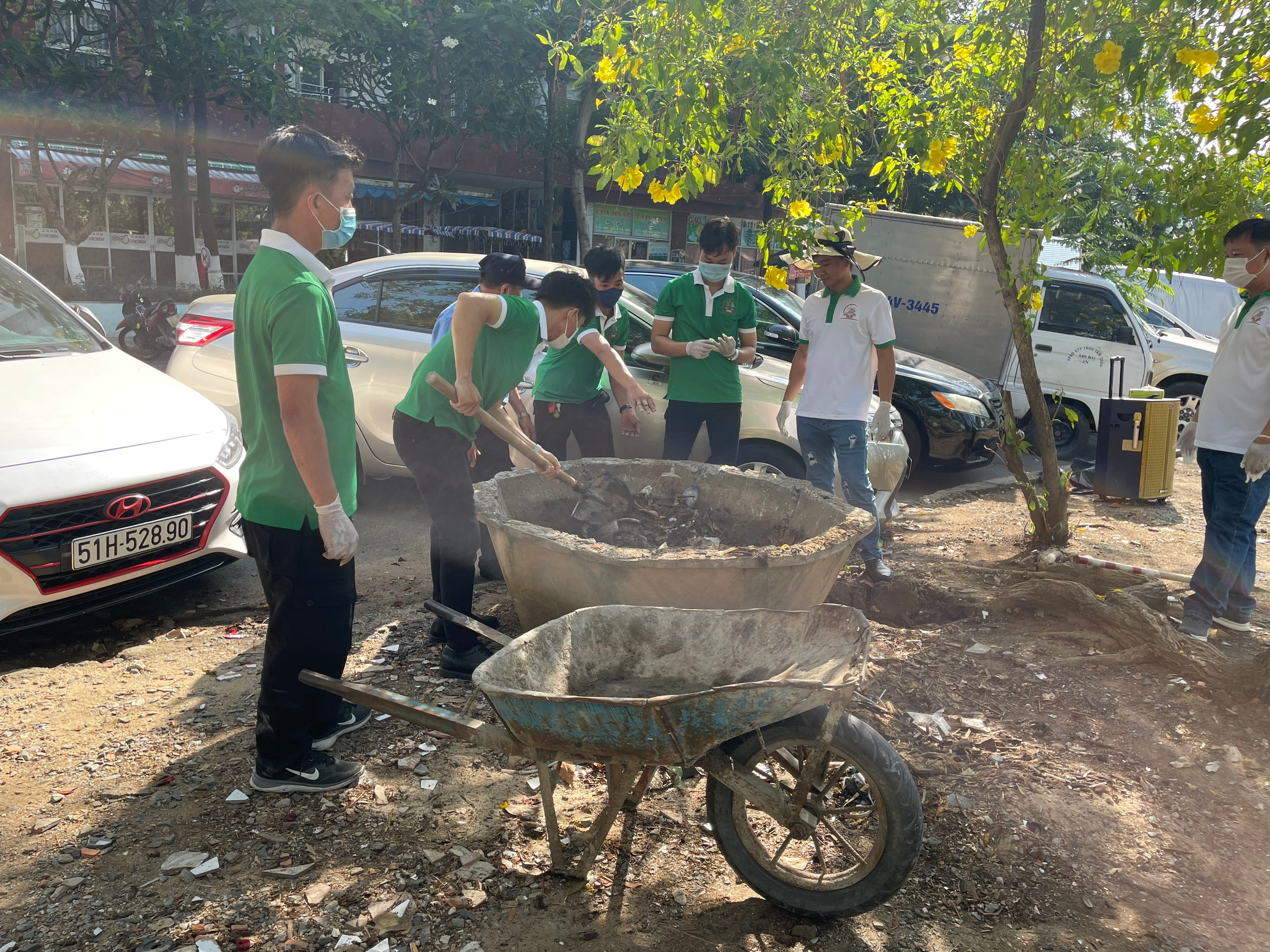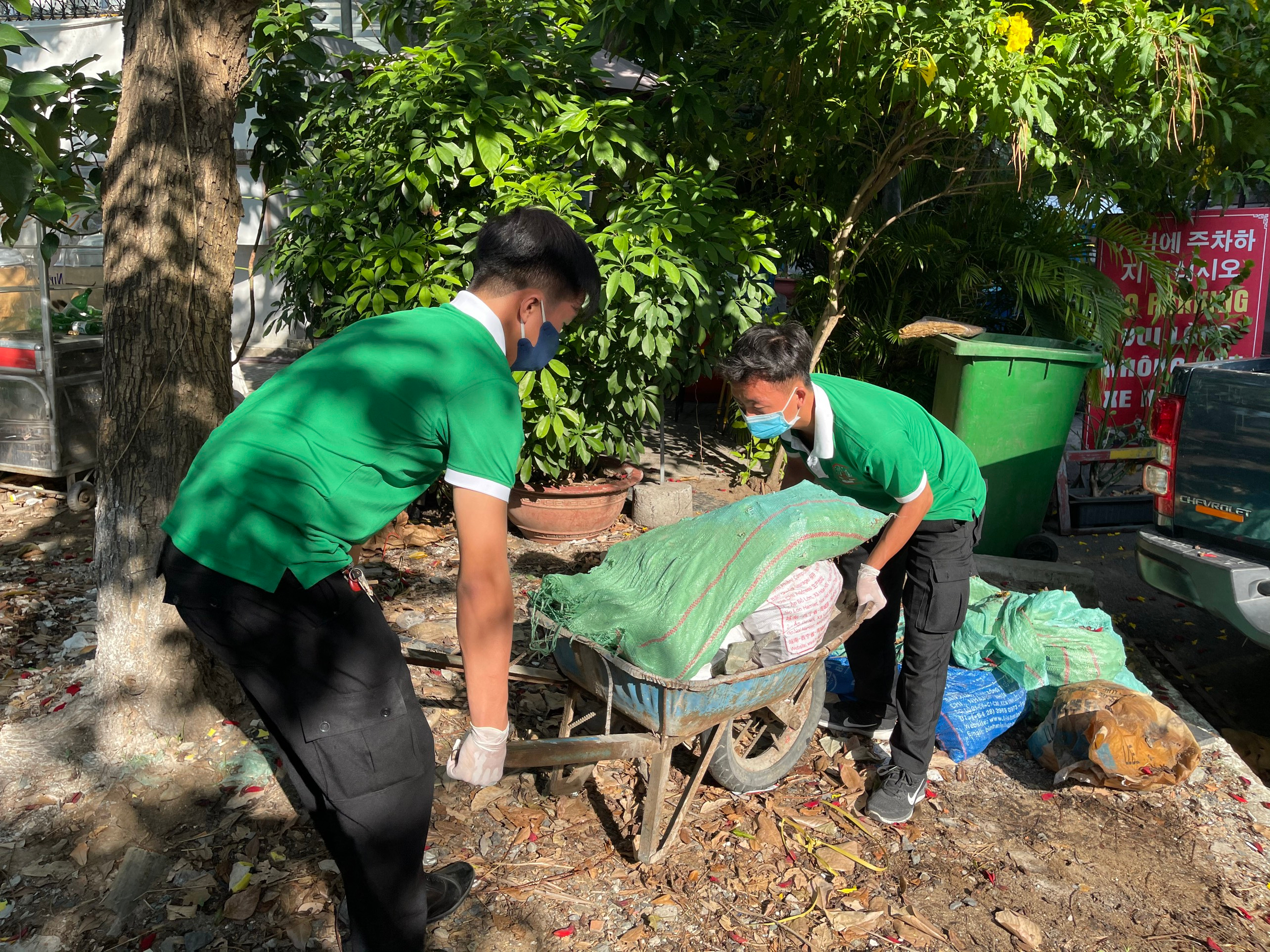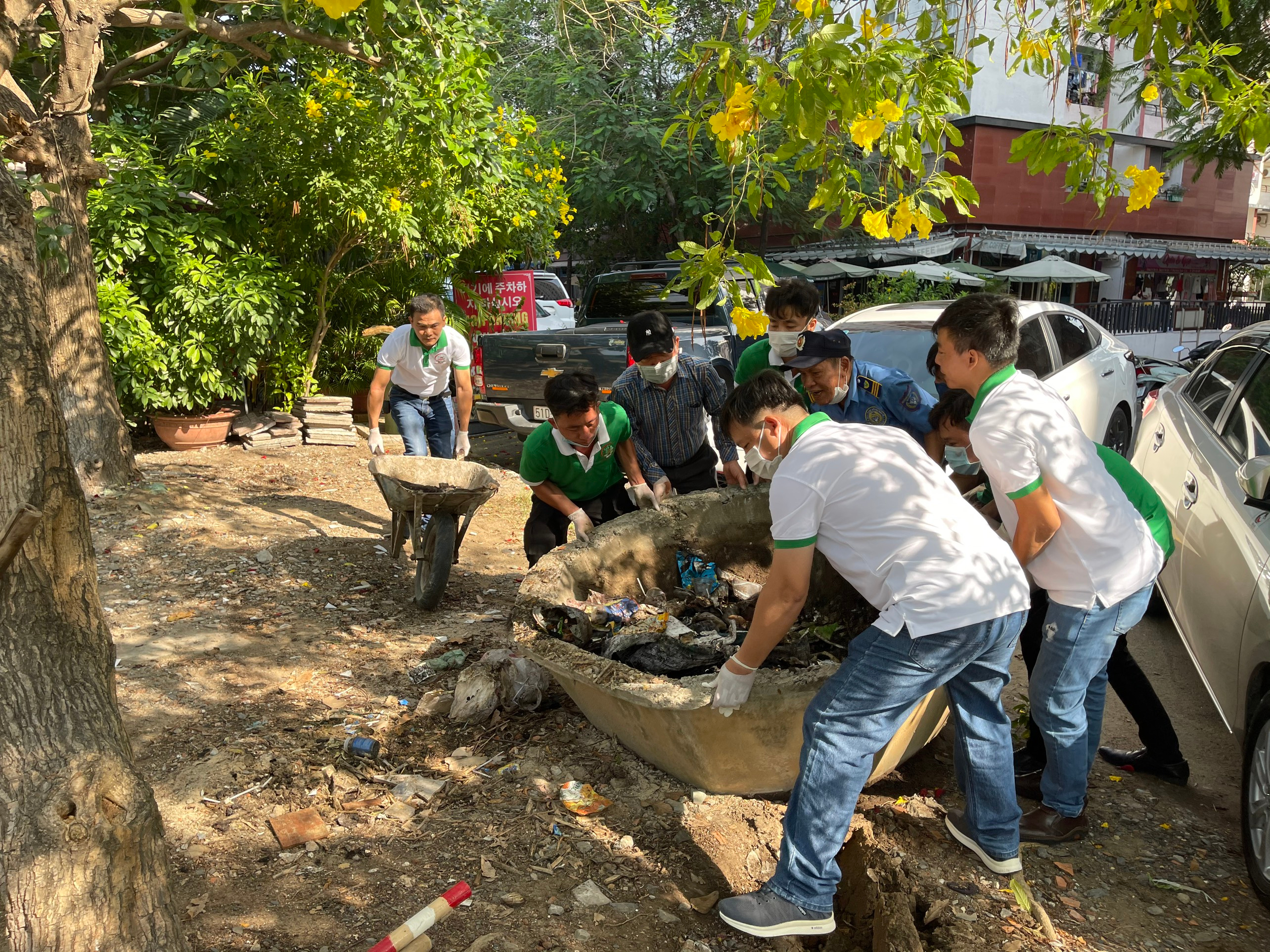 + Hỗ trợ thu gom rác thải xung quanh khuôn viên