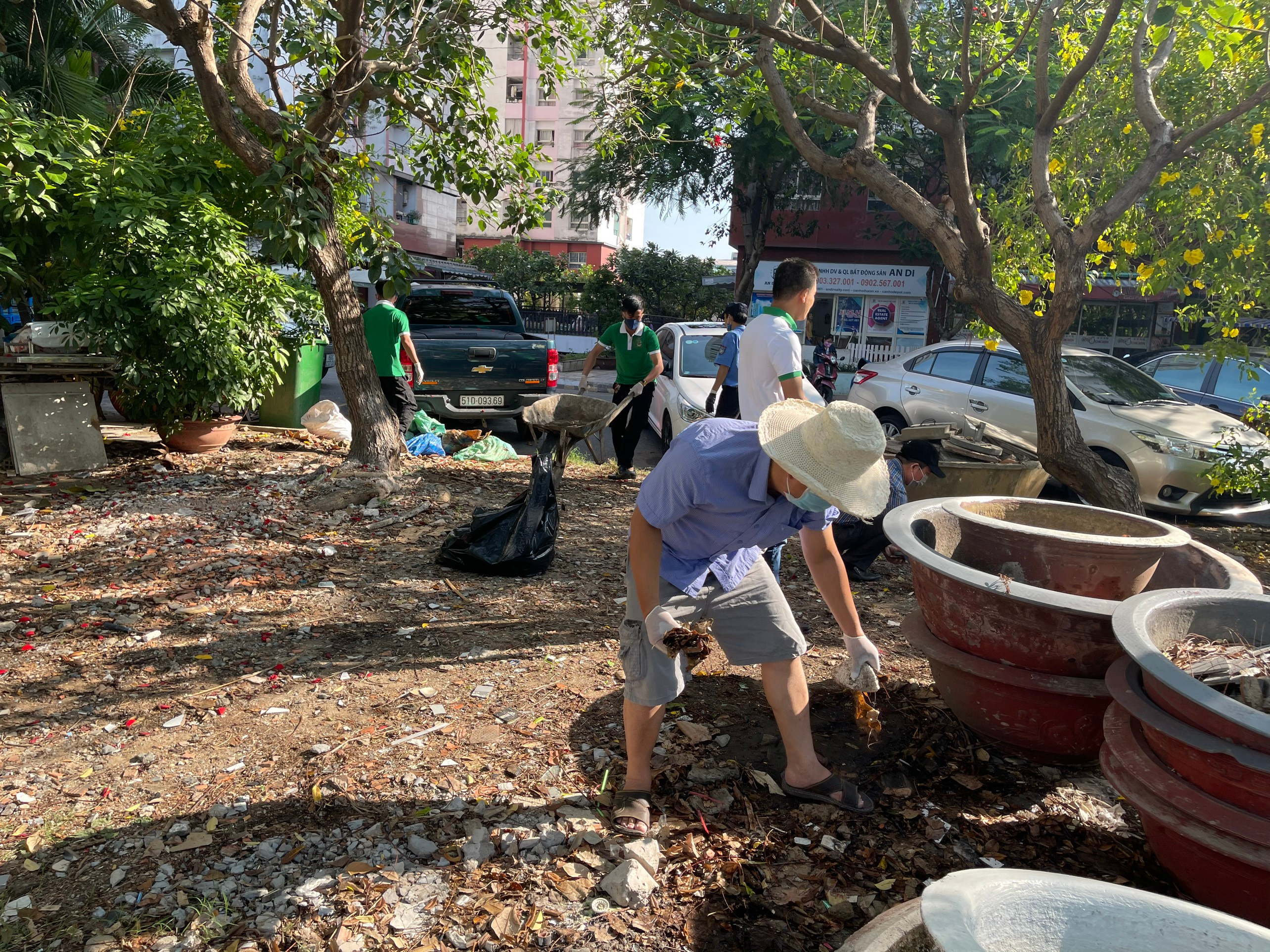 + Thực hiện thu gom rác thải khu vực trước Thái an 4